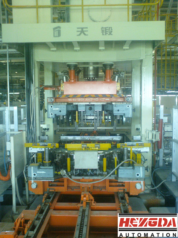 ?、僖慌_機器帶2個移動工作臺的結構,2個移動工作臺左右移動,客戶可以在壓機的前后方向安裝上料、下料裝置。