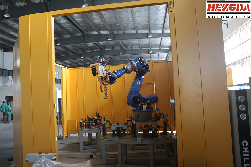1)每個焊點的焊接周期可大幅度降低,因為焊鉗的張開程度是由機器人精確控制的,機器人在點與點之間的移動過程、焊鉗就可以開始閉合;而焊完一點后,焊鉗一邊張開,機器人就可以一邊位移,不必等機器人到位后焊鉗才閉會或焊鉗完全張開后機器人再移動;